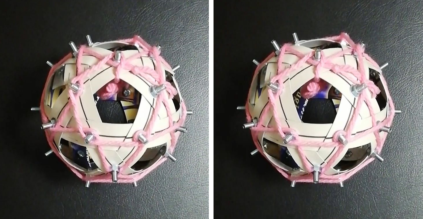 | 上下互い違いのパーツをマスクのゴム紐で緊結 |
