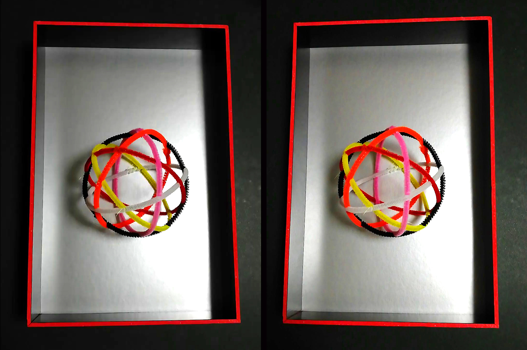 | 上下互い違いのモールを釣り糸で結ぶ |