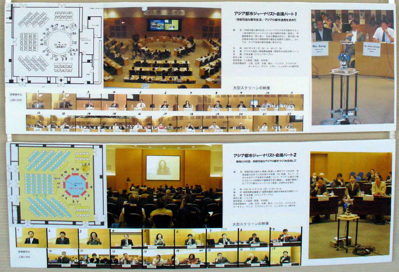 | I had been involved in Asian city journalist conference twice in 2007 as the officer in charge of City to City cooperation in the UN-HABITAT Regional Office for Asia and the Pacific (Fukuoka). We took on a challenge to hold for the first time, a round table conference to draw out free opinion of the journalists invited from ten Asian cities. I introduced this system to make up for the shortcoming of round table conferences, that is, the faces of the panelists in the back semicircle cannot been seen from the spectators. |