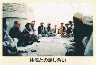 <解説> 国連ハビタットのスタッフは、まず「まちづくり」をしたことがない人たちの中に飛び込み、「これからどういう『まちづくり』をしたいのか」を話し合います。そして、住民や自治体とともに、井戸掘り、上下水道の整備、トイレ・橋・道路・街灯・学校・病院などの建設、ゴミ回収等のルールづくりを進めます。ハビタットの「まちづくり」のねらいは、住民が、自分達の力で「まちづくり」を行えるようにサポートすることなのです。