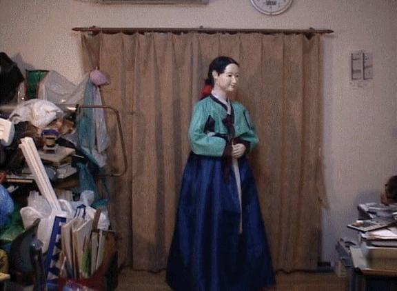 ![]() 오른쪽의 CG애니메이션은, 구입한 장금이 의상과 인사하는 동작을 PC로 편집한 것입니다. 이 시뮬레이션을 참고로 자연스러운 움직임이 되도록 로보트의 구조를 생각하고 있습니다. |